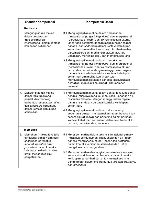 Keempat kelompok itu menjadi acuan dari kompetensi dasar bahasa inggris sd/mi dan harus. Viii kompetensi inti 3 (pengetahuan) kompetensi inti 4 (keterampilan) materi pokok 3. Mata pelajaran bahasa inggris untuk sekolah dasar (sd)/madrasah ibtidaiyah (mi) latar belakang bahasa memiliki peran sentral dalam perkembangan intelektual, sosial, dan emosional peserta didik dan merupakan penunjang keberhasilan dalam mempelajari semua bidang studi. Salam sejahtera untuk kita semuanya, kali ini admin menyampaikan posting materi kompetensi inti dan kompetensi dasar untuk mata pelajaran bahasa inggris sekolah dasar (sd)/ sekolah madrasah ibtidaiyah (mi) kelas i s.d. Newer post older post home.