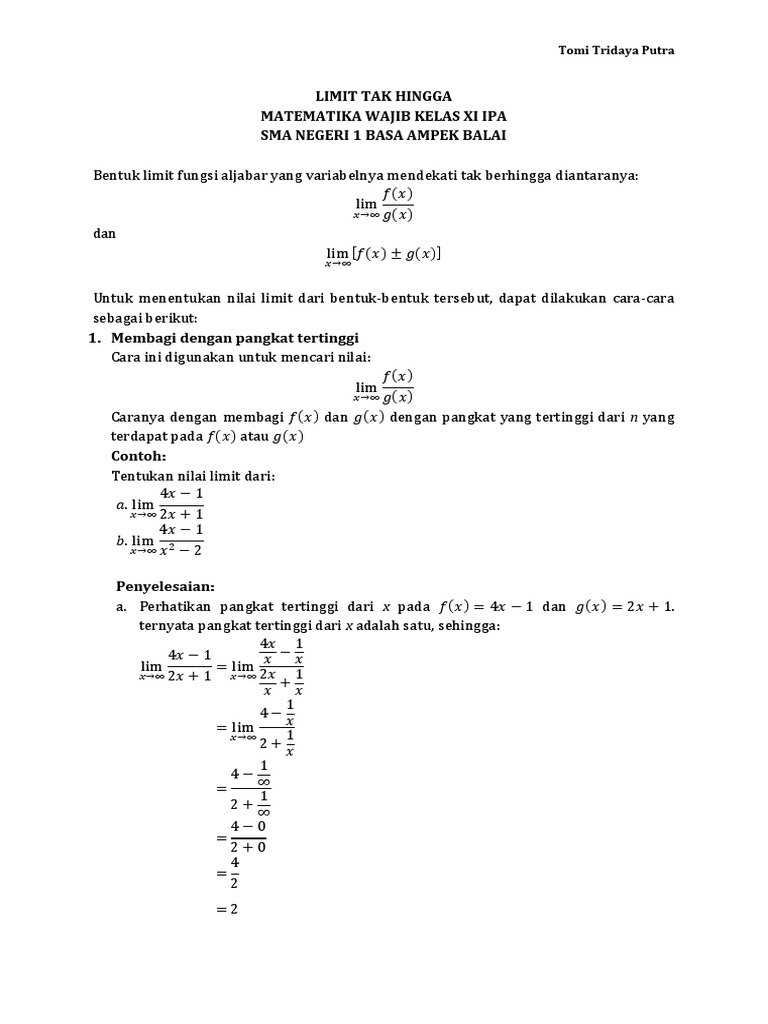 Sebenarnya cara mengerjakan limit tak hingga bentuk pecahan itu sangatlah gampang, yaitu seperti. Setiap bilangan jika dibagi dengan bilangan yang besar, hasilnya akan mengecil. Kumpulan soal limit pangkat banyak x mendekati tak hingga. Limit tak hingga akar pangkat 3 archives dosen mipa. Berikut ini sedikit apa yang kami ketahui, semoga dapat menambah wawasan dan bahan diskusi untuk kita semua.