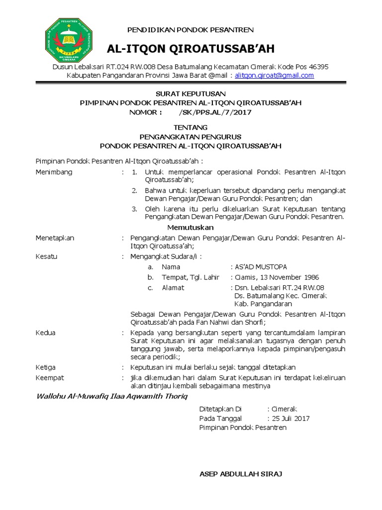 Sk pengangkatan pengasuh pondok pesantren. We did not find results for: Check spelling or type a new query. Maybe you would like to learn more about one of these?